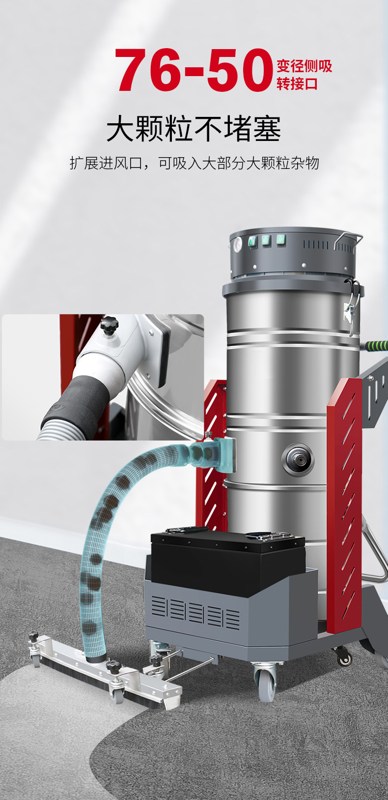 武清坦洁380V双桶不锈钢工业吸尘器X7系列